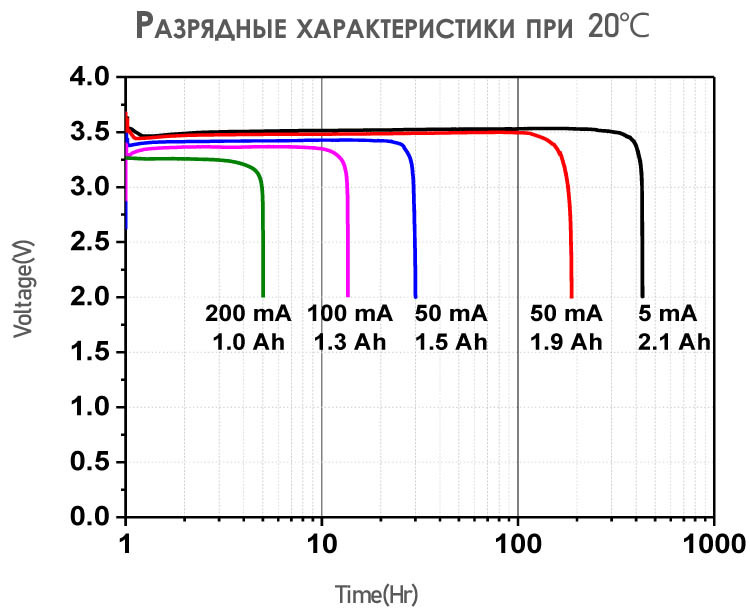 spiral 3.67V, 2Ah, 250mA, 800mA(pulse)